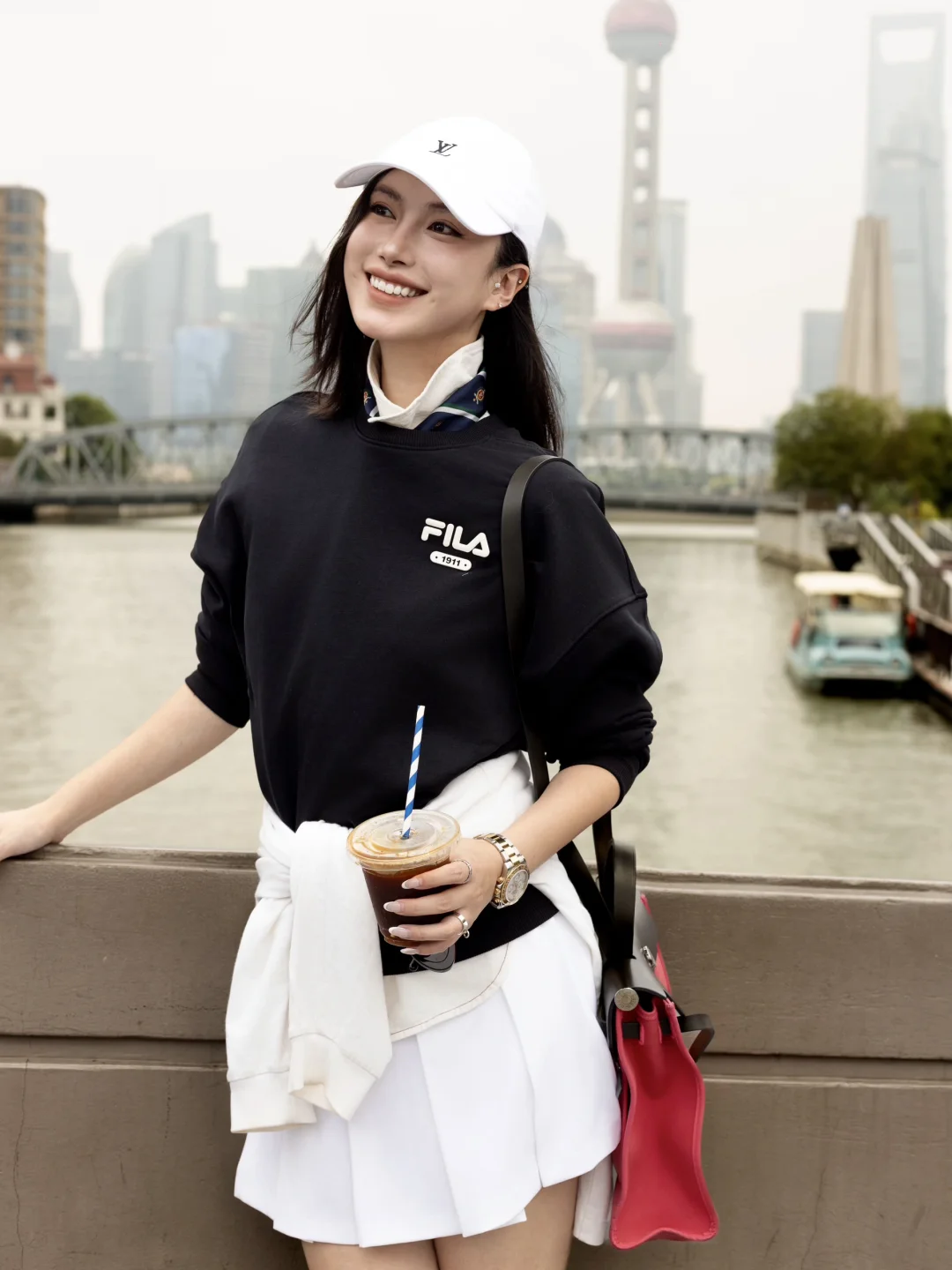 搭配一条白色百褶裙