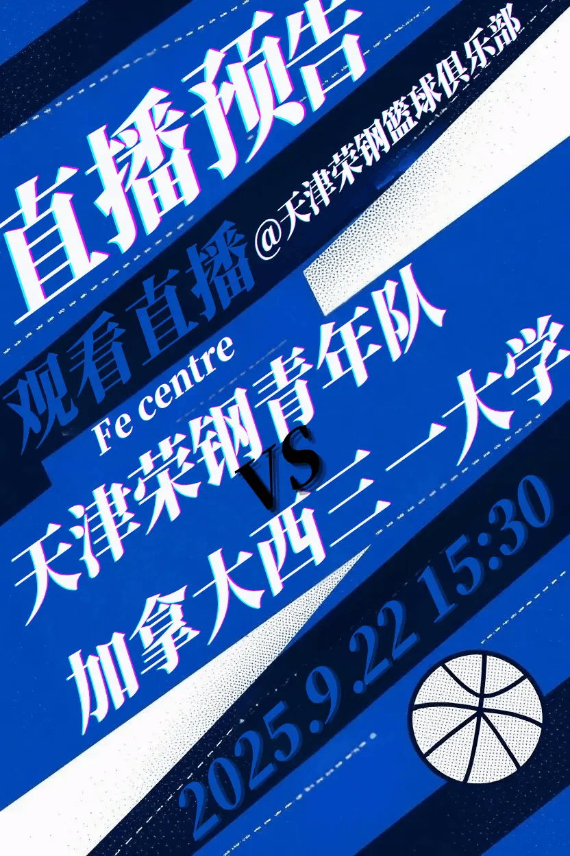 配文:天津荣钢青年队✖加拿大西三一大学篮球队一场跨国友谊赛,即将热力上演!