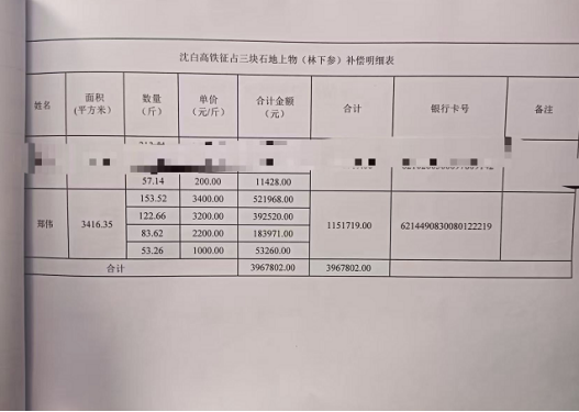 沈白高铁作为国家重点交通工程,征地补偿工作本应严格遵循法定流程,保障被征地村民的合法权益。然而,许某林提供的材料显示,这场关乎村民切身利益的补偿工作,却在执行过程中出现了问题,据举报材料称,个别人员涉嫌利用职务谋取私利,背后疑有公职人员参与。