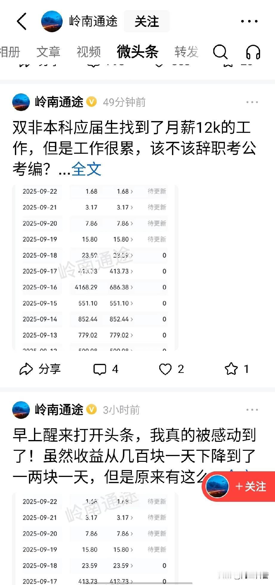 “岭南通途”这大佬又复出了,也写了好几篇,还是原来的配方,还是原来的味道。 岭南通途虽然前几天被禁言了,刚刚才重新开始,但是解禁之后流量还是非常的好,非常羡慕他。 虽然觉得平台应该是晒收益可以,但不能都是,还得有点别的,不管怎么说,为他点赞,坚持不懈的精神。