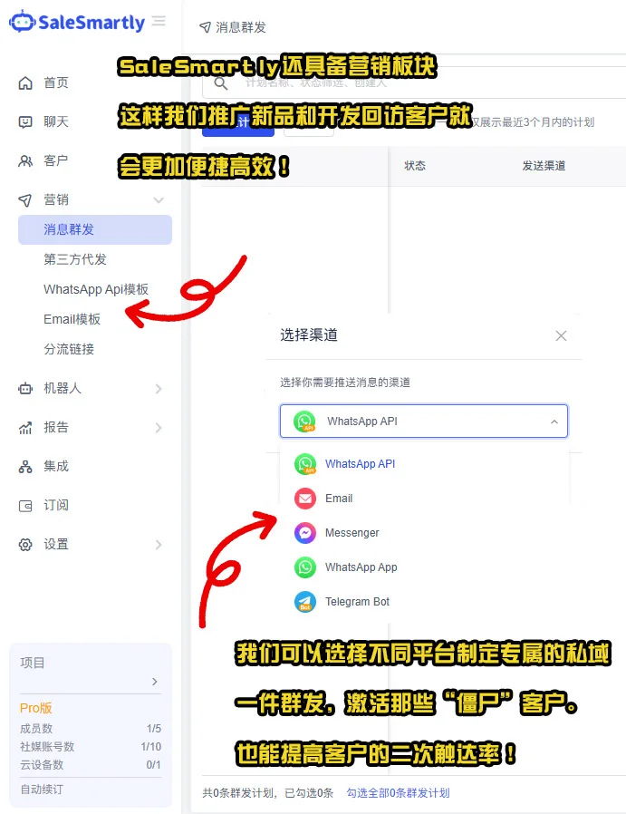 5.支持私域一件群发功能,可以更好的用来做“僵尸”客户的二次触达,也可以用来推广自己的新产品。不断巩固自己的私域池
