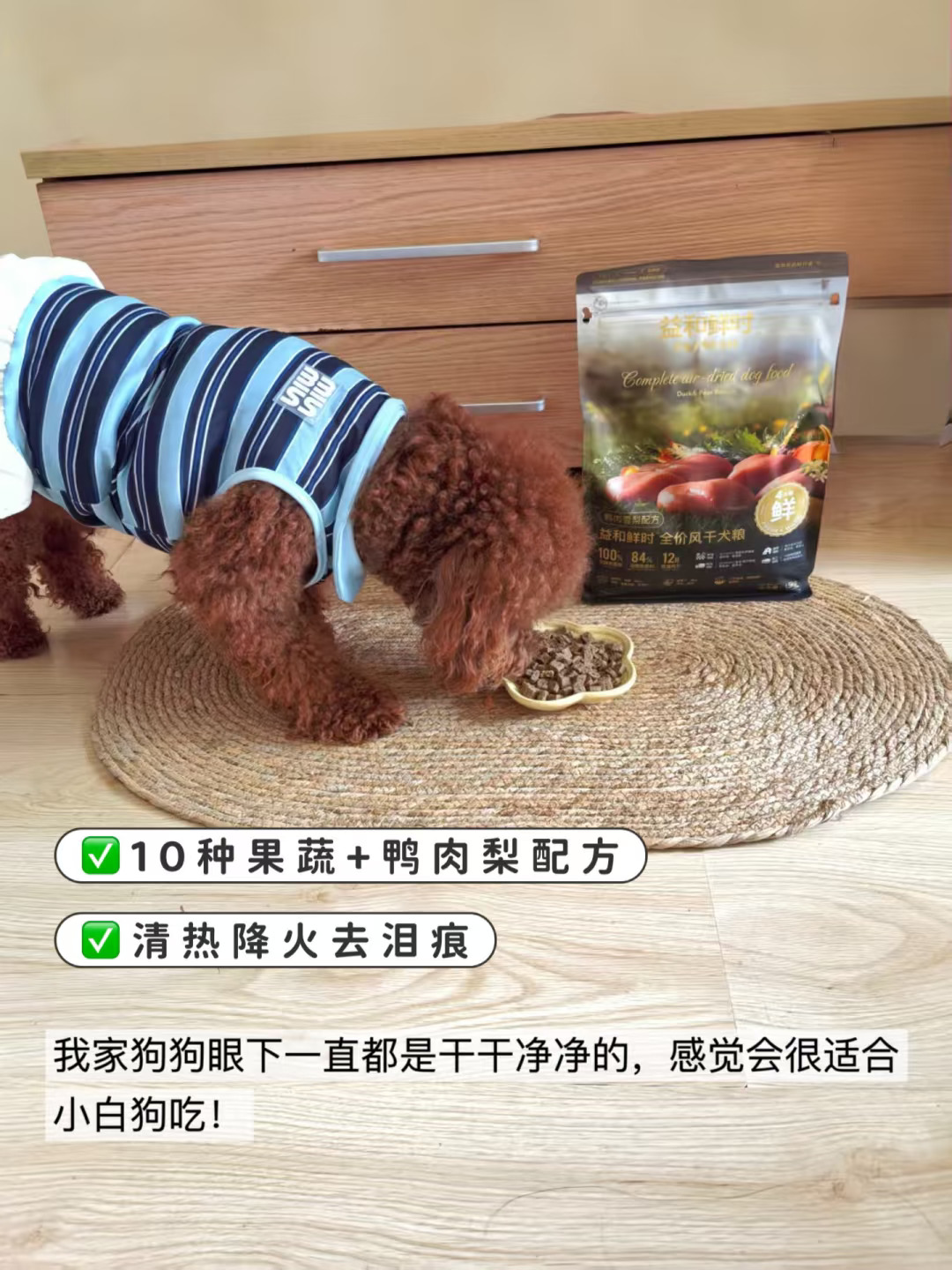 一开袋就是天然的肉香味,不是那种香精冲鼻的假香!因为用的是80%真鲜肉,不是冻肉也不是肉粉,还有鸭肉+雪梨🍐配方,清火去泪痕,我家挑嘴狗闻了直接坐直等开饭!