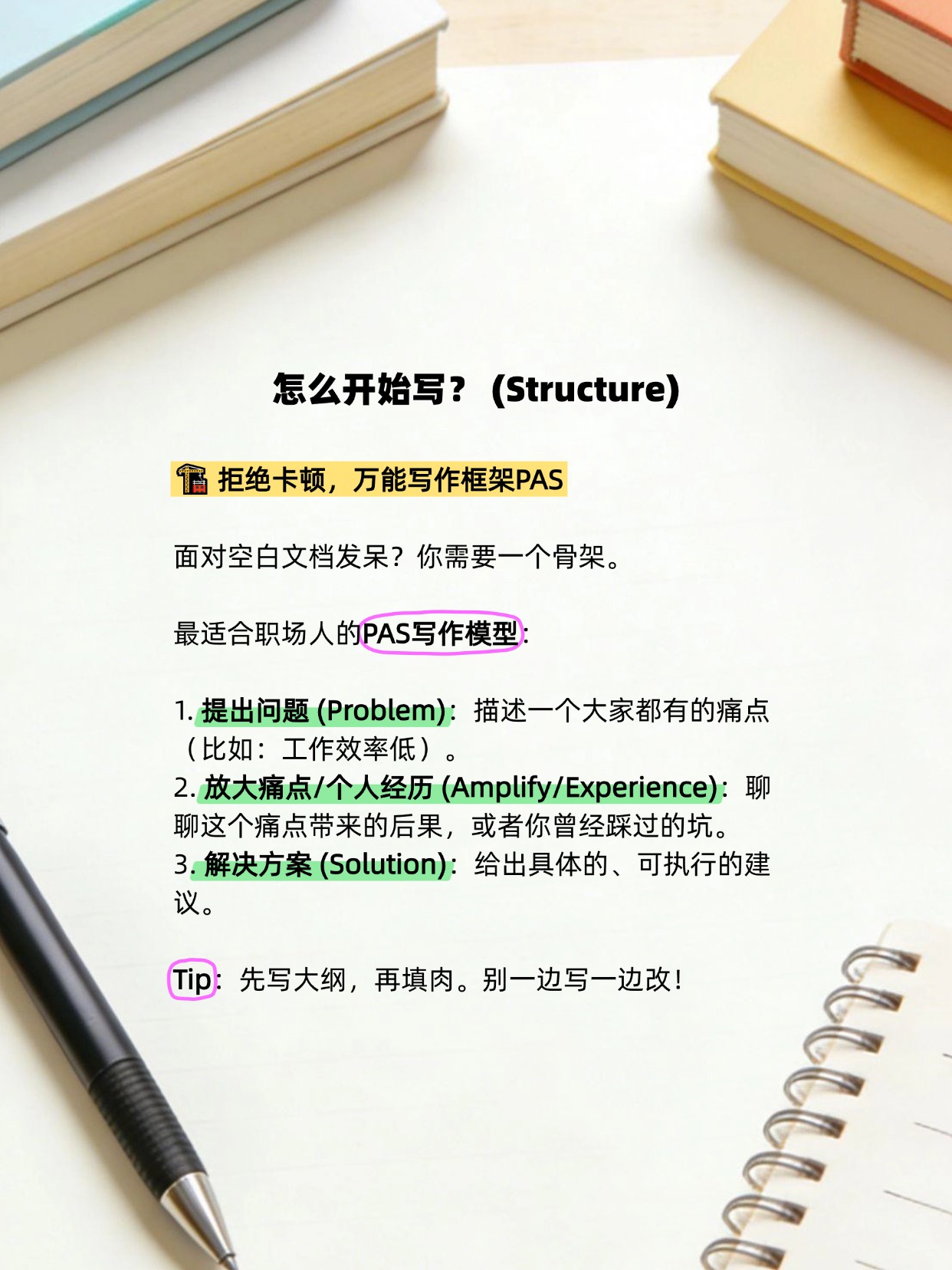 2️⃣ 结构:PAS模型(问题-经历-方案),拯救你的卡文。