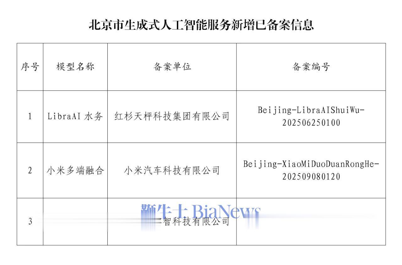 10月9日,网信北京发文称,根据《生成式人工智能服务管理暂行办法》,截至2025年10月9日,我市新增3款已完成备案的生成式人工智能服务,累计已完成161款生成式人工智能服务备案。