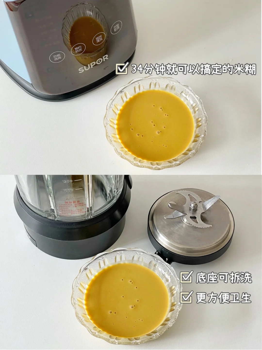 🔹我们家用的这台是可拆洗破壁机,每餐做完,刀座可以直接拆下来洗干净,就很方便~