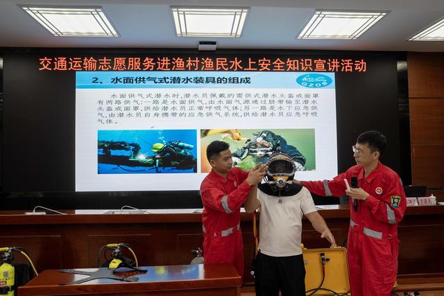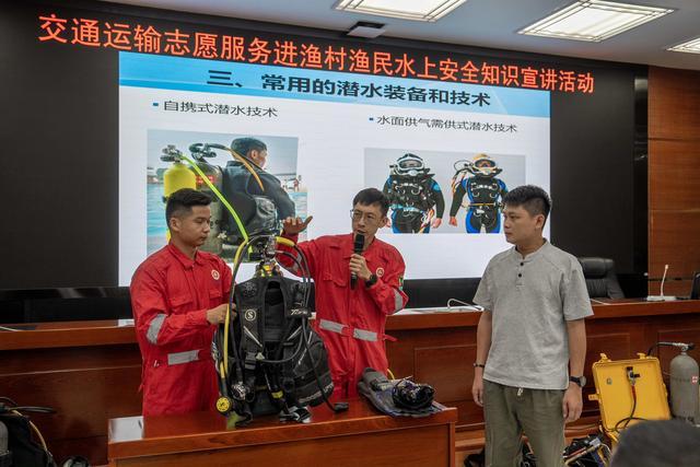为积极响应交通运输领域公共服务要求,切实提升渔民水上作业安全水平,10月11日,由中央社会工作部指导,交通运输部政策研究室、交通运输部救助打捞局主办,交通运输部广州打捞局、汕尾市“百千万工程”指挥部办公室、广州潜水学校、汕尾市交通运输局联合承办的“交通运输志愿服务进渔村——渔民水上安全知识宣讲活动”在广东汕尾顺利举行。当地50余名海洋捕捞渔民及公共安全应急救援潜水员代表参加本次培训。