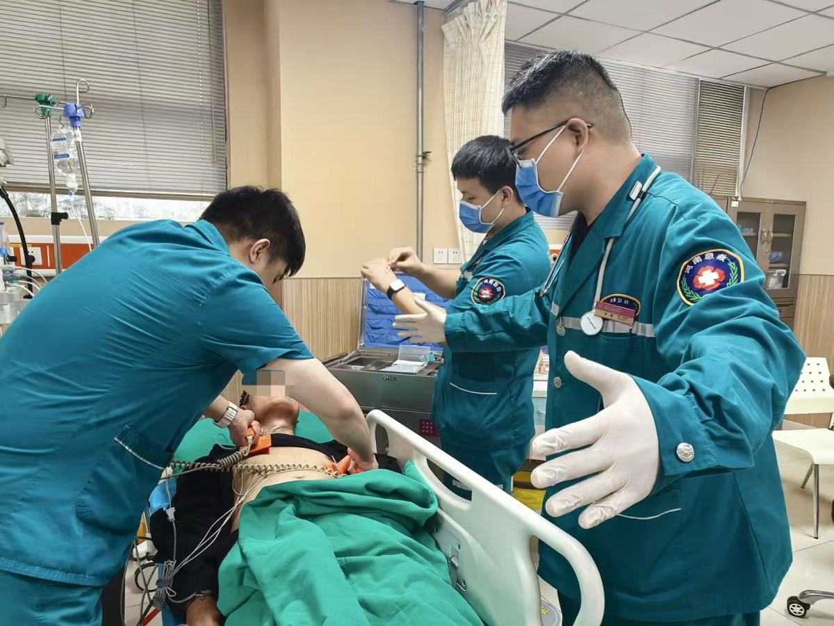 医护团队立即启动紧急抢救:电除颤、持续胸外按压、建立静脉通道、气道管理……