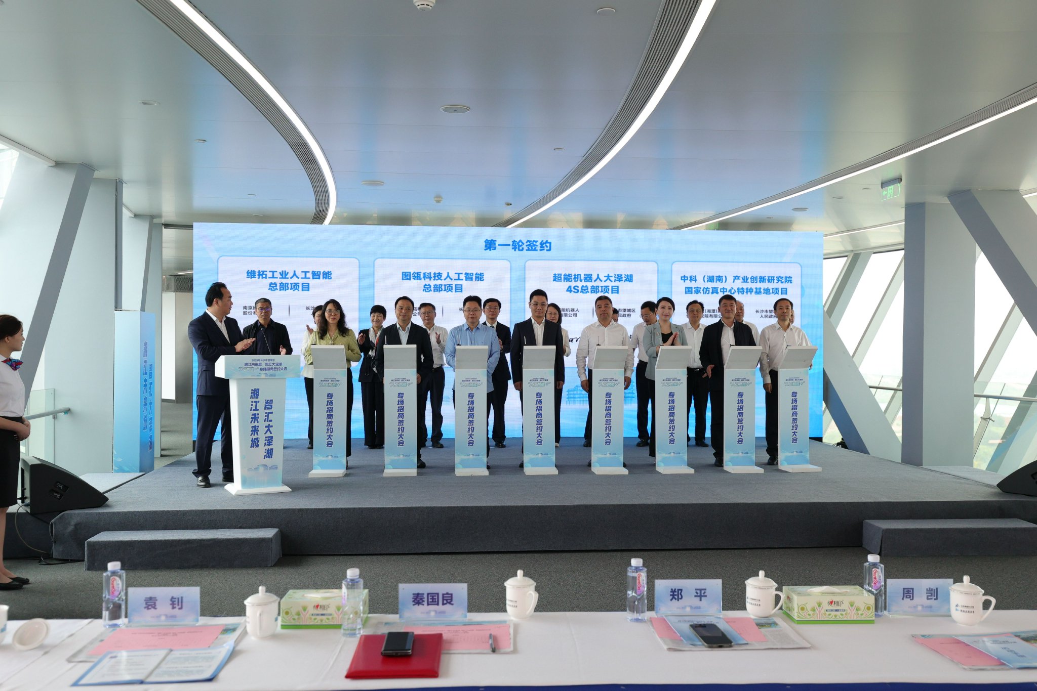 10月17日,在湖南省长沙市望城区大泽湖海归小镇·湘商总部基地研发中心举办“湘江未来城智汇大泽湖”招商签约大会“人工智能+”专场活动,本次大会签约项目20个,其中上台签约项目8个,涉及具身智能、视觉AI、智慧医疗、智改数转等“人工智能+”领域。本次大会签约项目既有深耕行业多年的龙头企业,也有极具潜力的创新团队。这些项目的落地,将为望城“人工智能+”产业发展注入强劲动能,让这里成为名副其实的“智汇高地”。