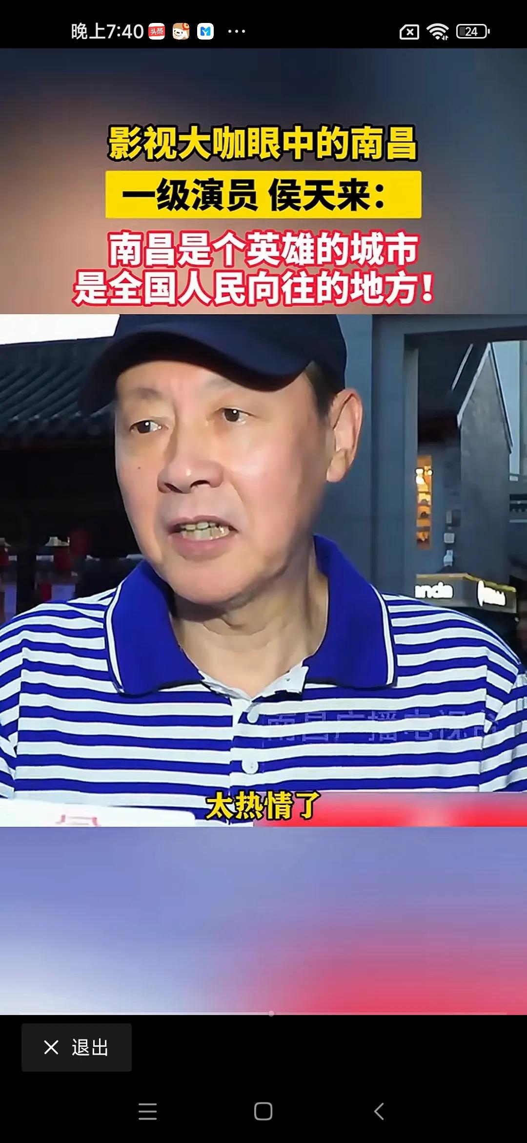 多位影视大咖为江西文旅加油,侯天来侯总也来了!近日著名一级演员侯天来现身江西南昌,直言老区人民太热情,一位司机在不认识他的情况下为他介绍景点,侯总谦虚了!滕王阁、八一广场等景点给侯总留下了深刻的印象! 侯天来曾出演满秋、女人不再沉默等多部电视剧,影视形象为观众熟知。