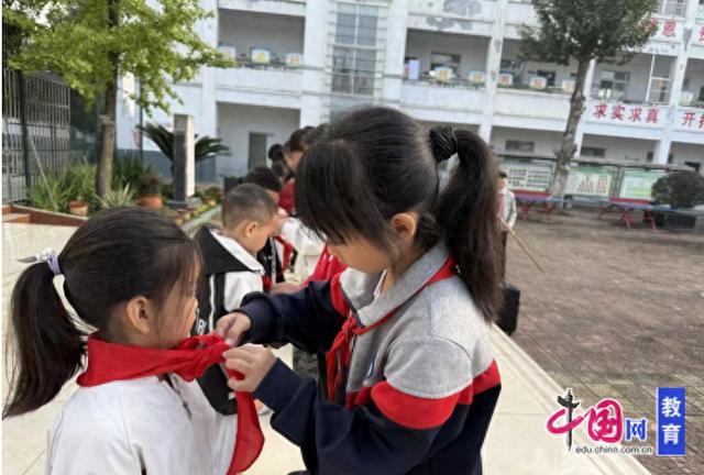 仪式上,老队员庄重地为新队员佩戴红领巾。鲜艳的红领巾在胸前飘扬,新队员眼中充满激动与自豪。学校德育处为新成立的中队授予中队旗,接旗队员紧握旗杆,神情坚定。