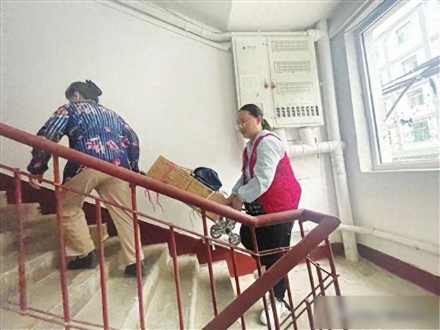 大同路北社区网格员温璐辉帮助老人魏文英抬东西