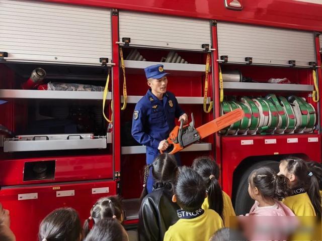 活动中,消防宣传员化身“安全导师”,用童趣十足的语言向孩子们介绍了消防车里的“神奇装备”。当高压水枪、破拆工具、空气呼吸器等专业设备一一亮相时,孩子们的目光瞬间被吸引,纷纷围上前好奇地触摸、提问。“这个‘大钳子’能剪断钢筋吗?”“穿上消防服会不会很重呀?”面对萌娃们的“十万个为什么?”消防宣传员耐心解答。
