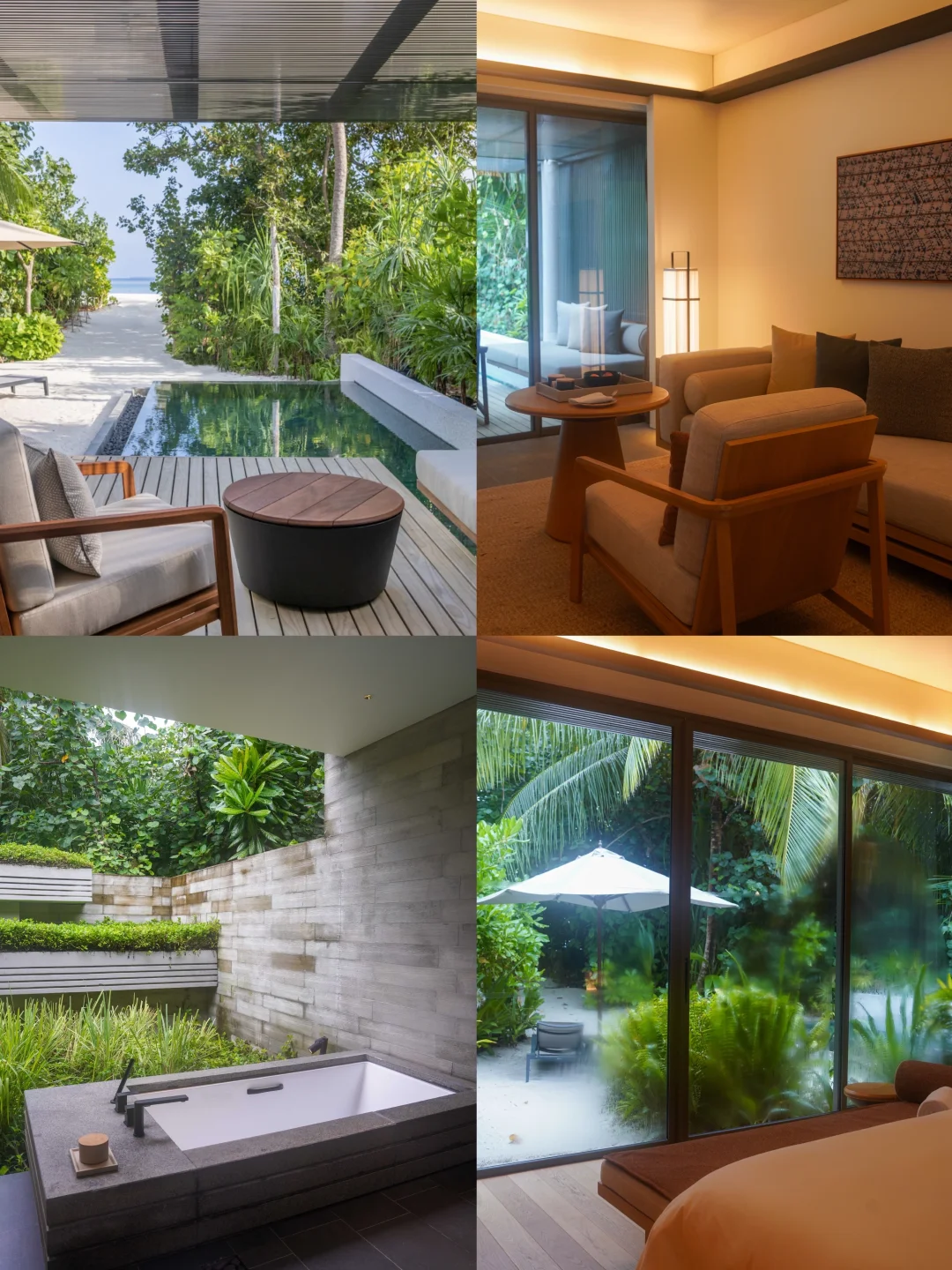 抵达阿丽拉科泰法鲁岛(Alila Kothaifaru Maldives)的那一刻,仿佛进入一场极简而纯净的梦。水上飞机盘旋着降落,眼前是被环礁与珊瑚守护的蓝色天堂,细沙如雪,海水清透得像被打磨过的玻璃。
