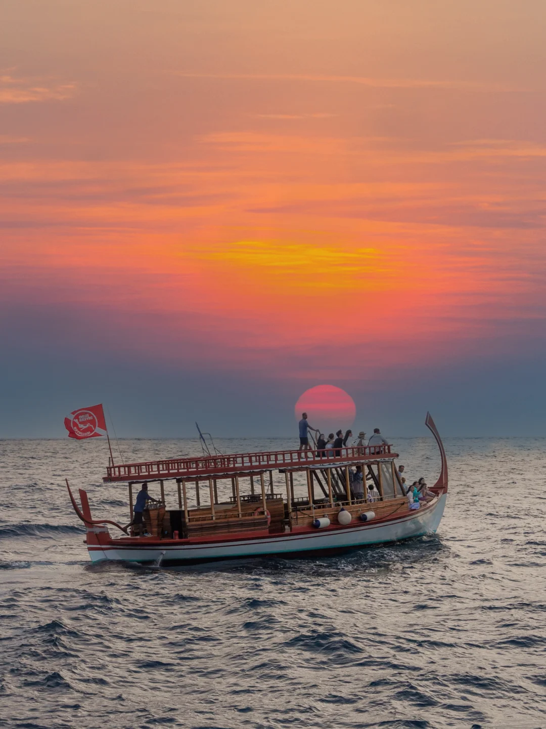 无人沙洲需提前预订,工作人员开快艇送你上岛,小小的无人岛屿还设有卫生间和餐厅,与爱人在这里看海上落日,非常浪漫。