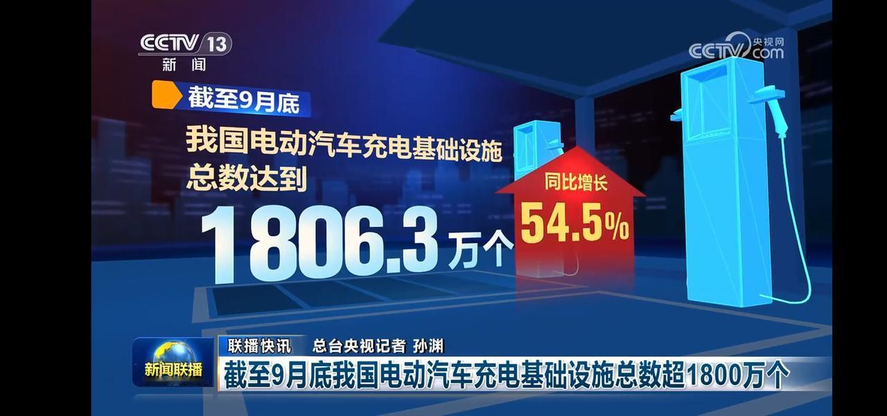 截止9月底,我国电动汽车充电基础设施总数达到1806.3万个,同比增长54.5%