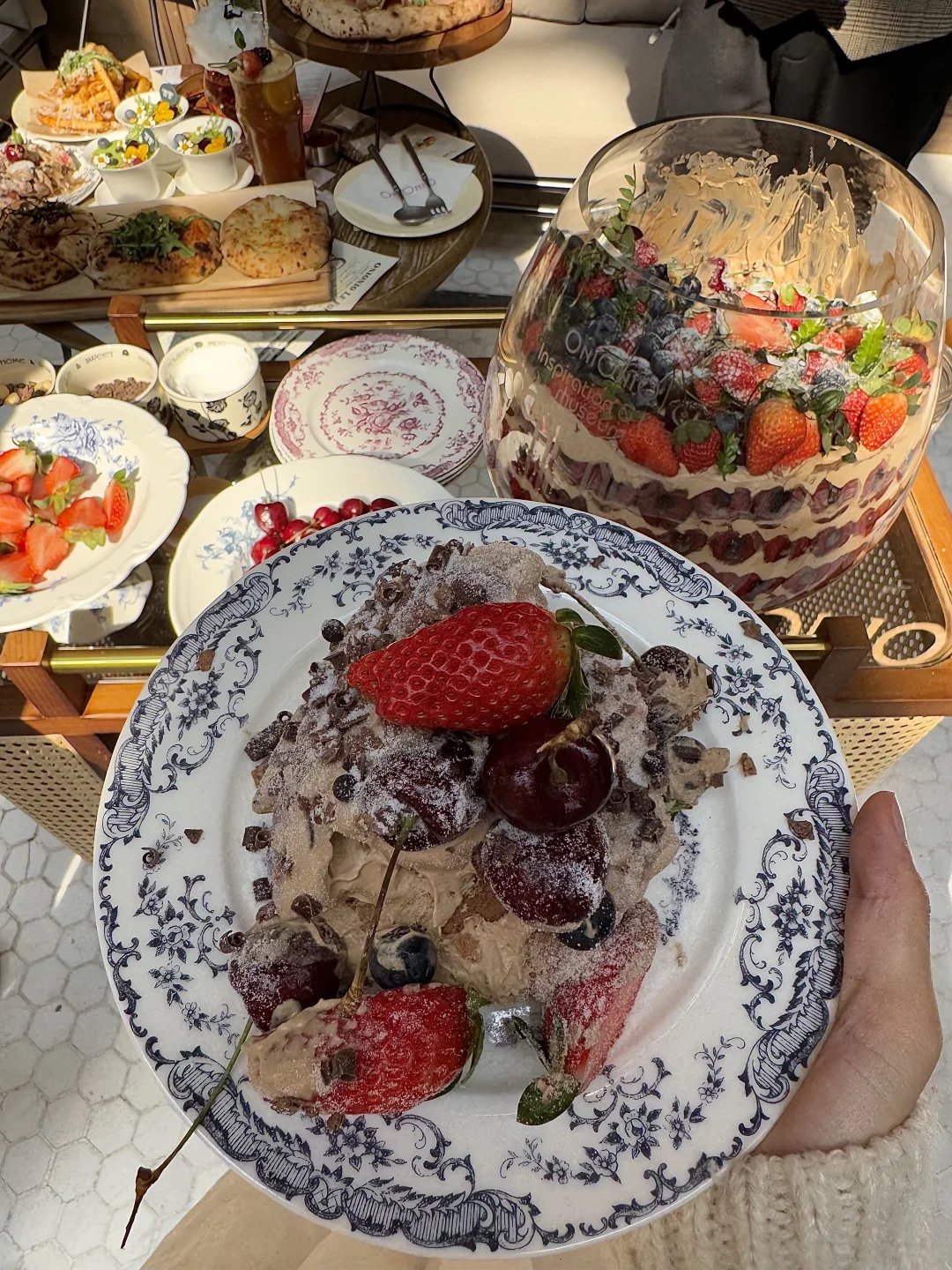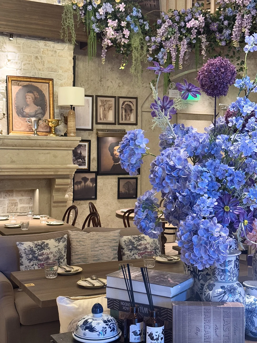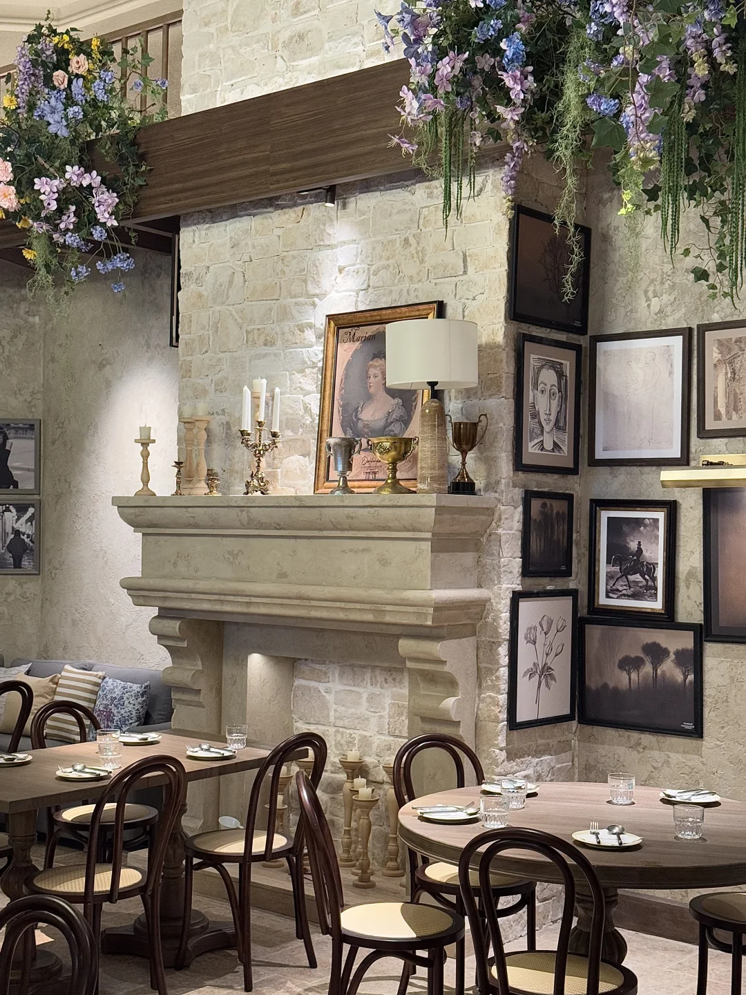 深业上城新开的!漂亮的餐厅➕1 南法复古风的装修太美了!! 随手一拍都是氛围感,水晶灯、壁画、壁炉… 用餐氛围好浪漫啊啊啊~姐妹小聚or约会都很适合! 点了🍰XXXXL法式车厘子蛋糕🍕、罗勒开心果火腿披萨🍕、MINI窑烤披萨拼盘、🍵抹茶草莓莫奈花园…都吼吼吃!! 预计会爆火。。。。。。。