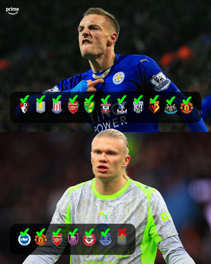 这样一来,英超历史连续最多轮进球的纪录仍然是哈兰德不可企及的目标,这一纪录由瓦尔迪效力莱斯特城期间创造。