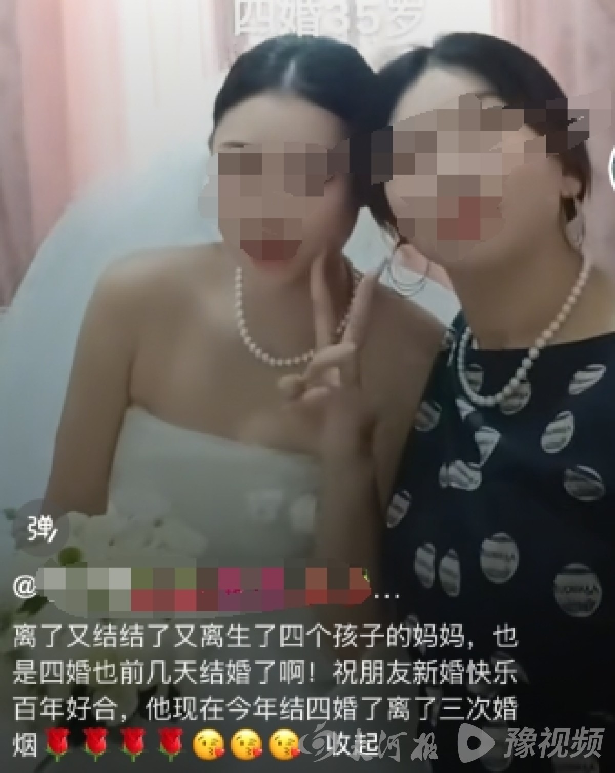 “我妈突然打电话问我是不是得罪人了,说有人在网上盗用我的结婚视频,还说我’结婚四次,有四个孩子’。”家住江西上饶的王欣告诉大河报《看见》记者,10月8日,一名陌生人从她母亲的账号中下载了她的结婚视频,并在个人账号上发布,自称是王欣的“朋友”,在文案和评论区称她“四婚四子,现在的老公五十多岁”等。