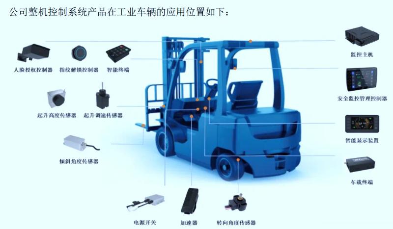 作为工业车辆上游企业,嘉晨智能的核心业务围绕电气控制系统产品及整体解决方案展开,主要产品分为三类:电机驱动控制系统(2024年营收占比73.42%)、整机控制系统(2024年营收占比26.17%)、车联网产品及应用(2024年营收占比0.22%)。