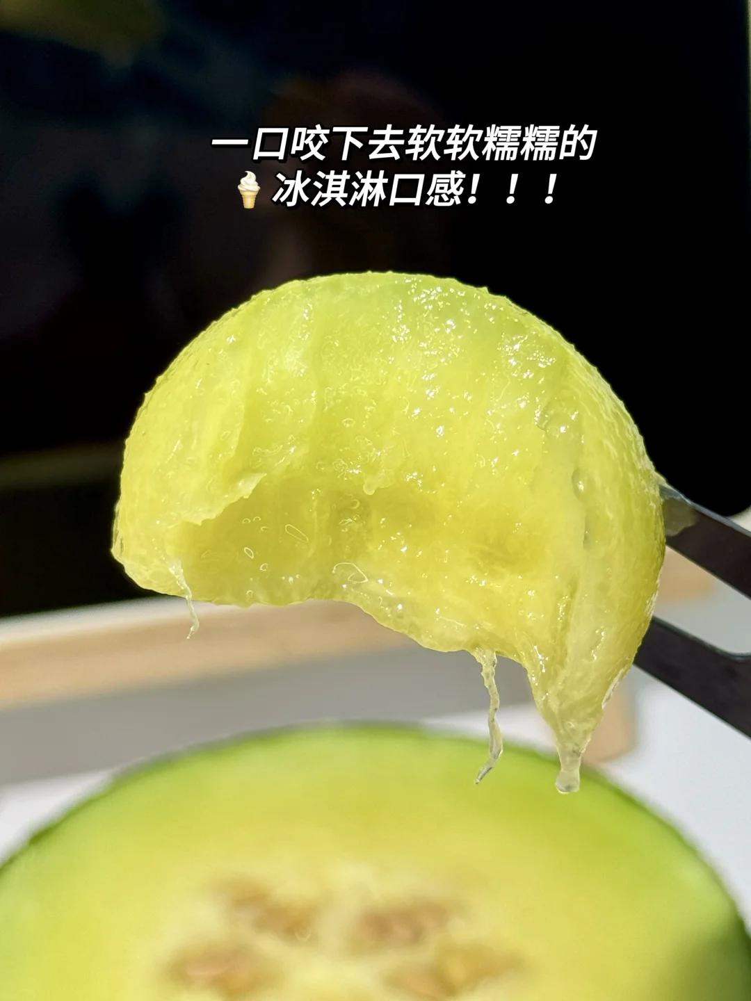 店员小哥说这个瓜,果肉软糯香甜、香味浓郁、有着颜色似碧玉的外形,所以叫“软香玉蜜瓜!!!