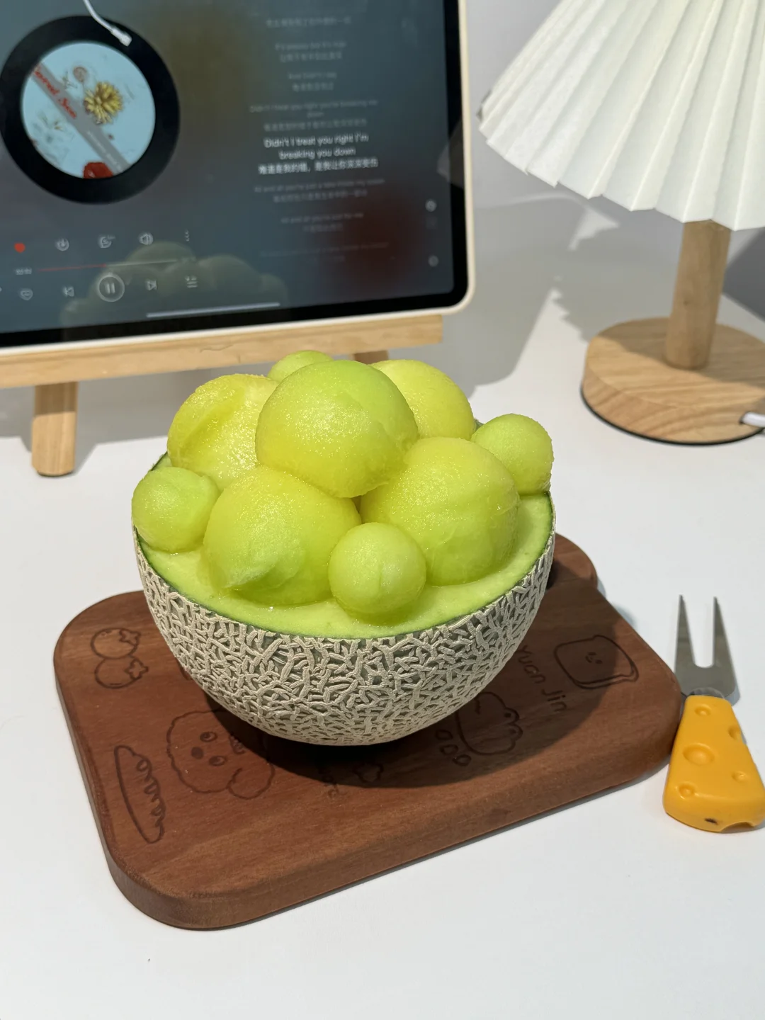 轻轻按压蜜瓜底部(无瓜藤的那端)手感发软表明已经成熟;当整个果体呈现微软的状态,就是软肉蜜瓜的最佳食用期哦~