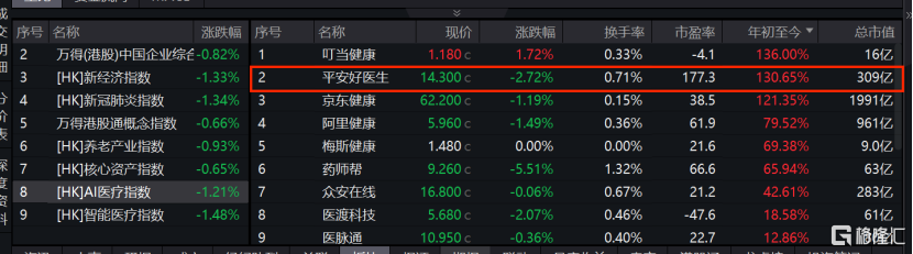 根据WIND数据显示,在AI医疗板块中,平安好医生虽然近期股价回调,但年初至今涨幅达到130.65%,位列第二,大幅跑赢同业平均水平。