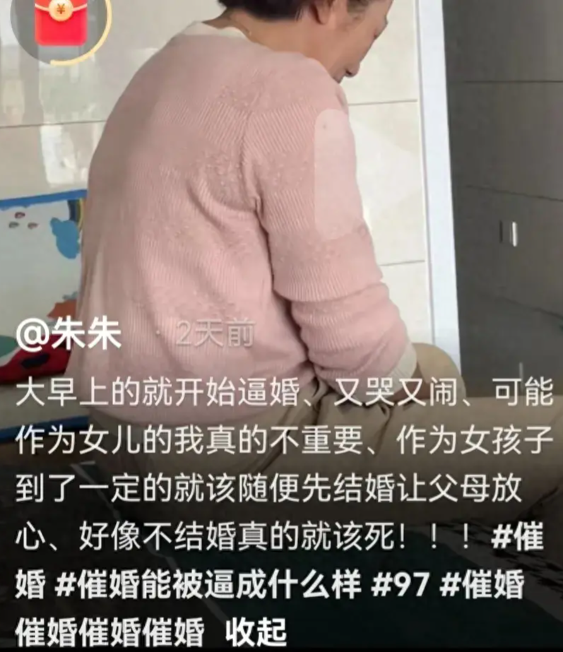 近日,一位97年的网友分享自己妈妈哭着催自己结婚的视频,引无数网友痛批,