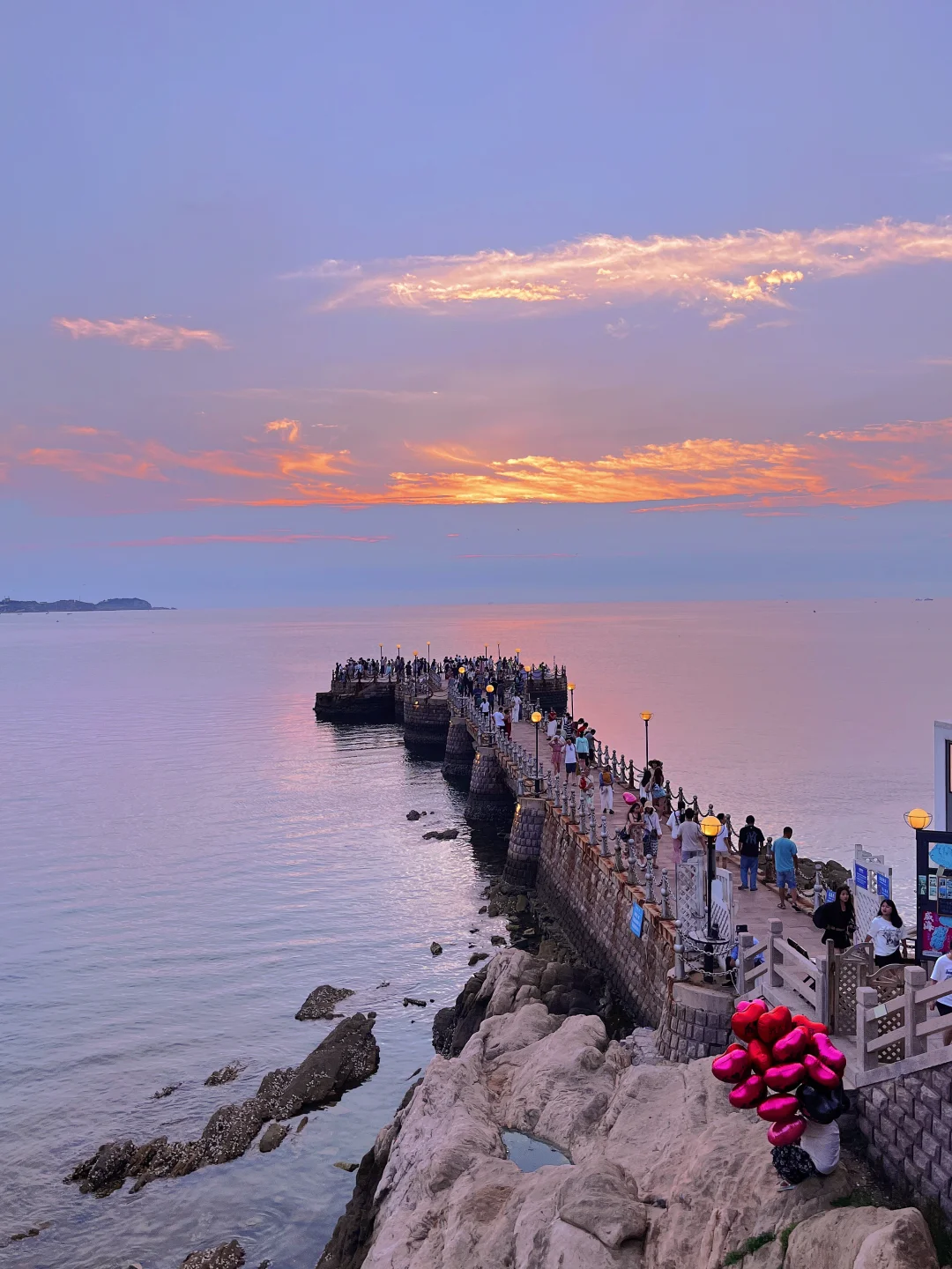 强烈建议!来威海的每一天都去看日落🌅!白天不出片的地点到了日落时分就必出片!大海和日落真的是绝配!如果看过了海上日落,那D2次日落一定安排在金海湾栈桥!长长的栈桥宿命感拉满,日落时分栈桥亮灯,日落后的蓝调时刻都值得拍拍拍!