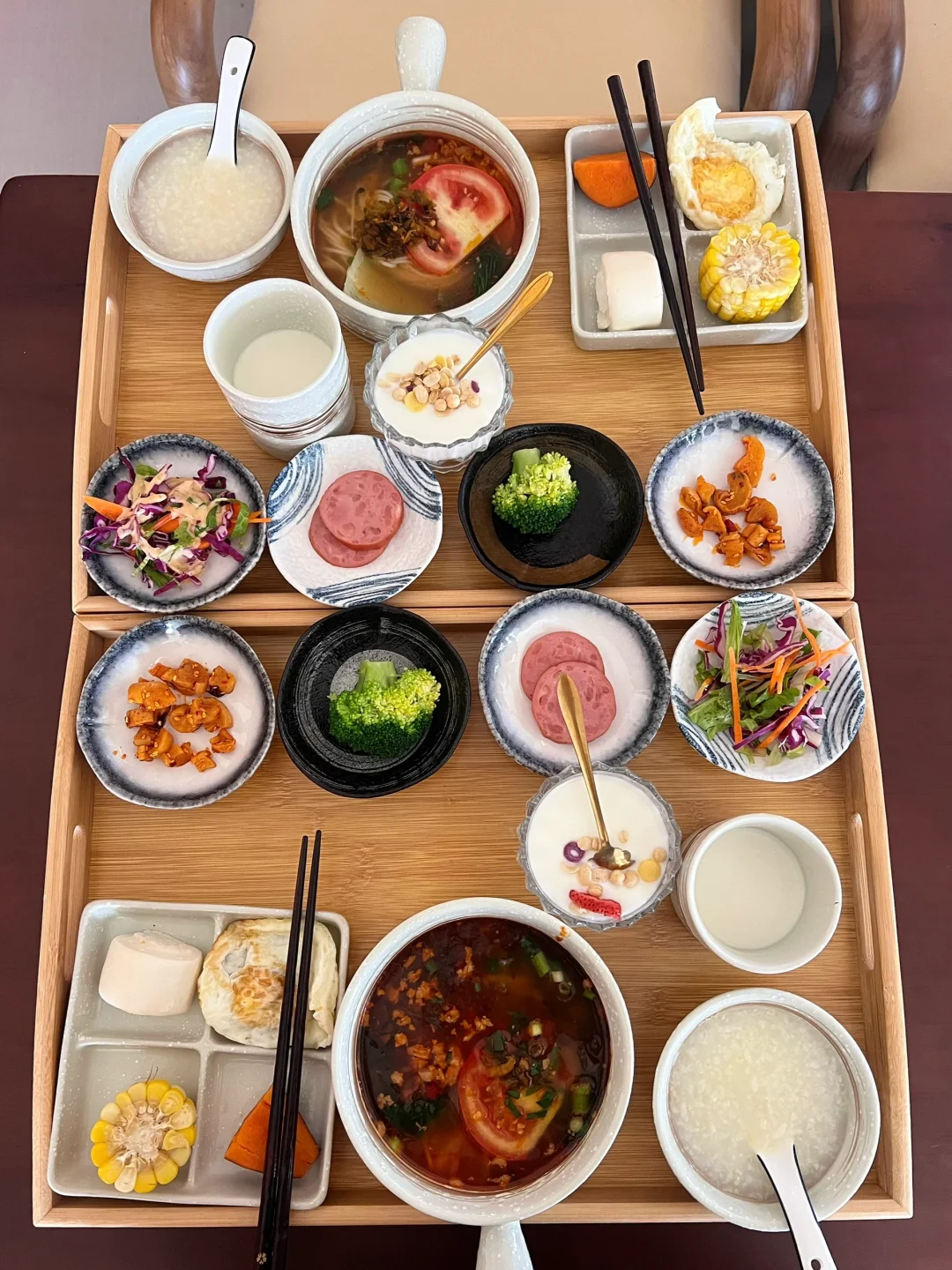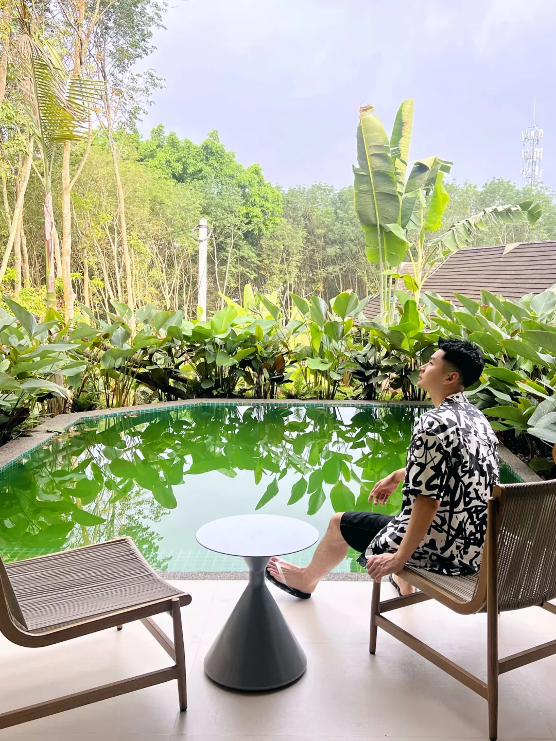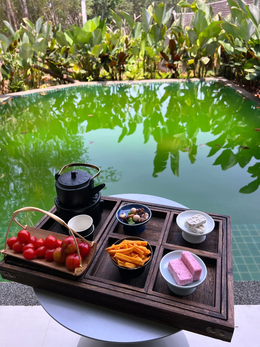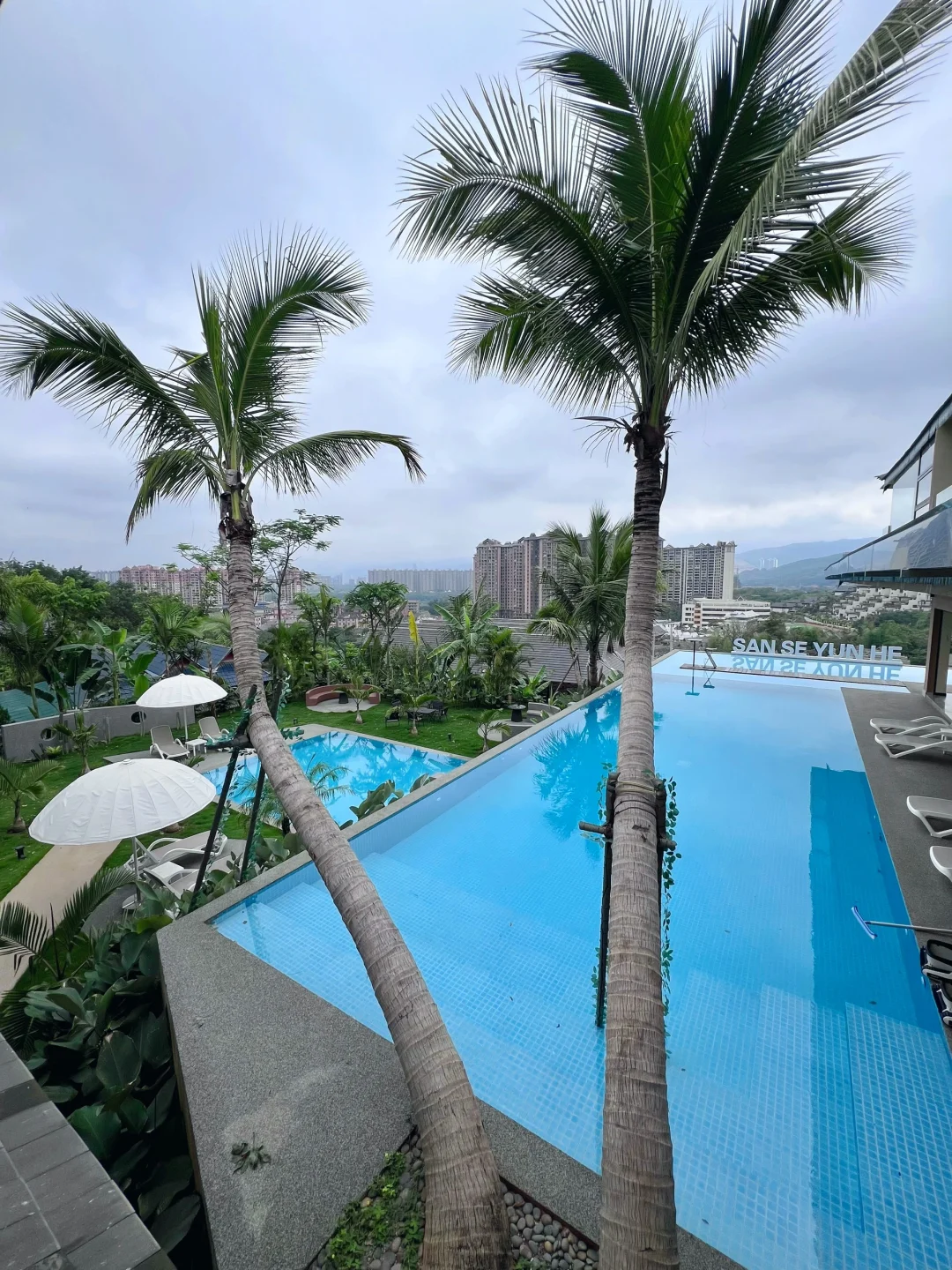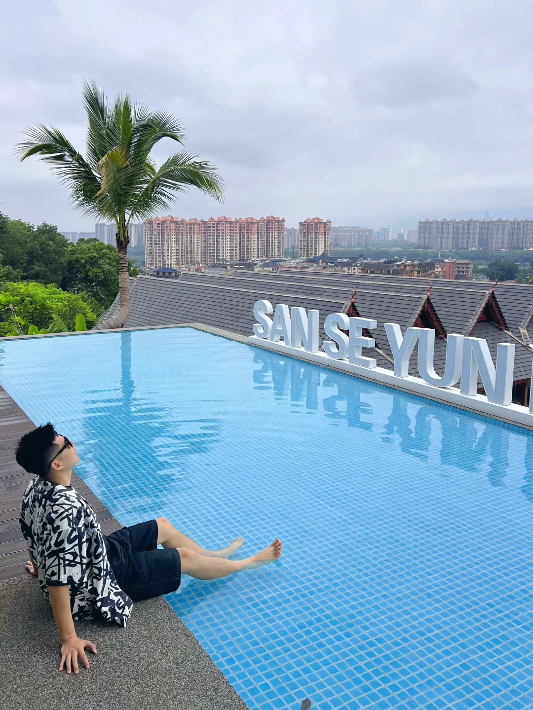 在西双版纳的这几天 每天都是吃吃喝喝闲逛 就很惬意 第三晚是住在一个在半山腰的民宿 🏨 三色云河民宿 一下车就有人帮忙提行李 民宿的无边泳池拍照真的很出片 住的是带泡池的森系房间 就特别适合躺平一天 民宿去古寨和村里都很方便 村里有很多咖啡小店也很好逛 吃的早餐和下午茶都不错 下次还来