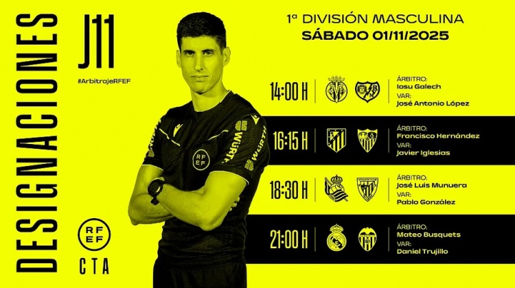 主裁判:何塞-路易斯-穆努埃拉,VAR裁判:巴勃罗-冈萨雷斯;