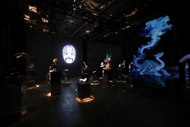 有趣的是舞台成为院校艺术展览的灵感来源。上海戏剧学院带来中国首位机器人博士“学霸01”,并在现场演绎戏曲实验剧场《霸王别机》,在传统与未来的交汇点,以颠覆性的数字艺术语言,重新解构了楚汉争霸的悲壮终章。中国美术学院跨媒体艺术学院媒介展演系呈现牟森教授与33位师生历时140天共同完成的21米微缩场景模型《高密东北乡》,作为江苏大剧院原创话剧《红高粱家族》项目的组成部分,以自然博物馆标本展柜作为展示形态,由二十个标准“景箱”生动展现文学作品中的标本式图景,为华语文学经典的视觉转译探索全新的路径。