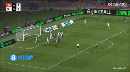 直播吧11月03日讯西甲第11轮巴萨vs埃尔切,比赛第25分钟,巴萨的右侧角球发到禁区弧顶位置,费尔明迎球直接尝试一脚远射,球打飞了。
