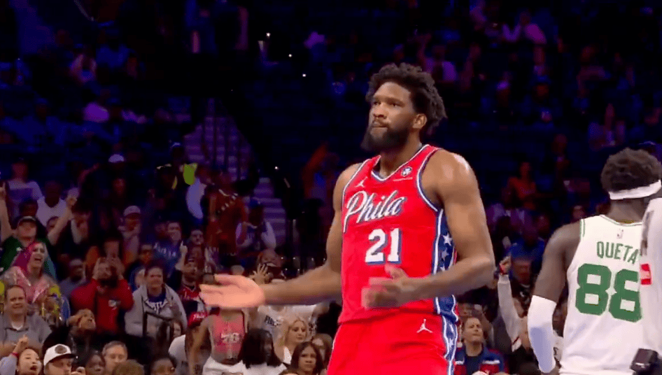 NBA官方表示,恩比德做出这个手势是在那场比赛首节还剩7:08秒时。