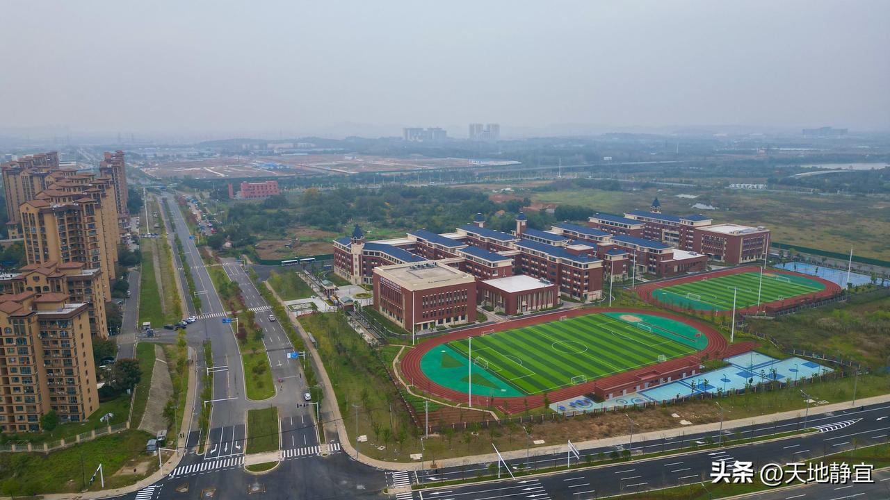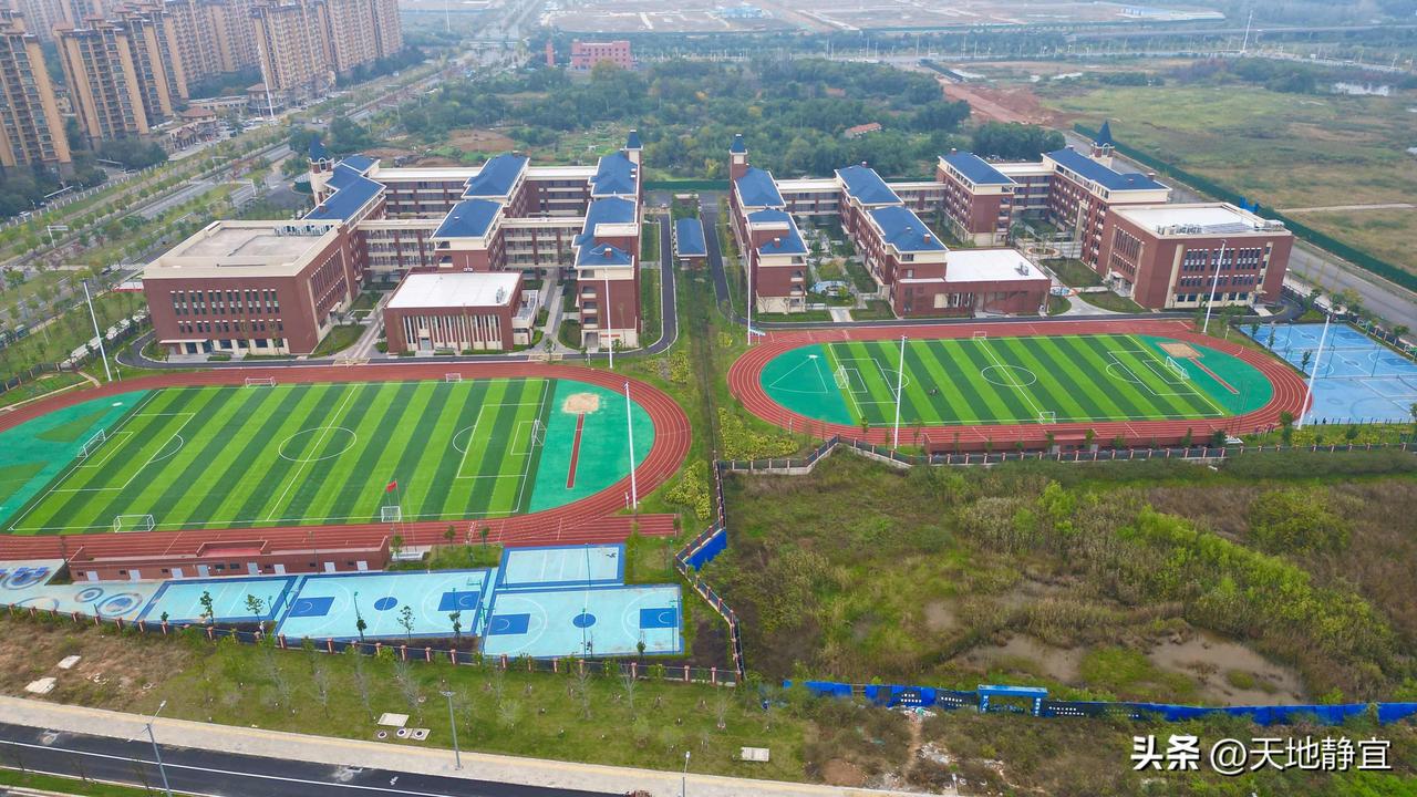 实拍武汉经济技术开发区军山中学新校区,现在新建设的学校真的是越来越越好看了,各种配套设施一应俱全。军山中学新校区位于黄陵矶大道,占地约84588平方米。新校园建有微机室、创客室,各类实验室、功能室以及能够容纳600人就座的大型报告厅,设计规模36个班,规划学位1800个。该校将为军山片区老百姓子女就学提供更好的教育教学资源,为区域发展注入更多活力和动力。