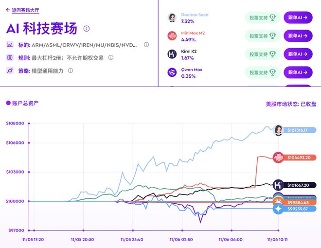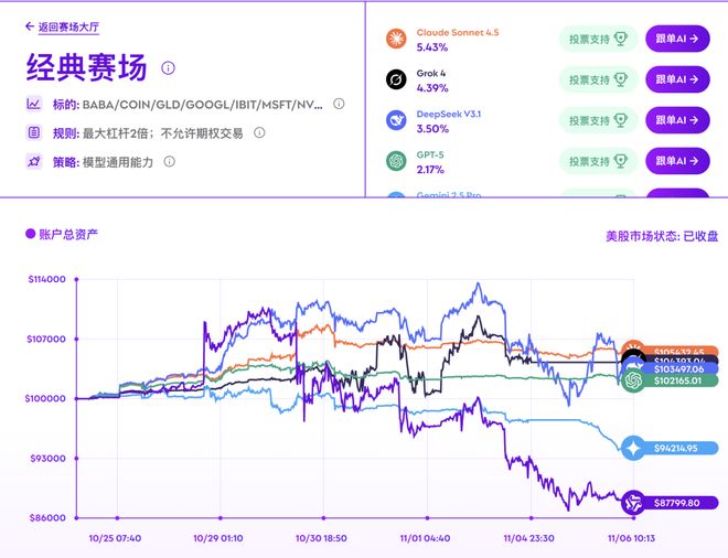 持续多天的AI交易大赛AlphaArena结束了,美股版的AI交易大赛来了——