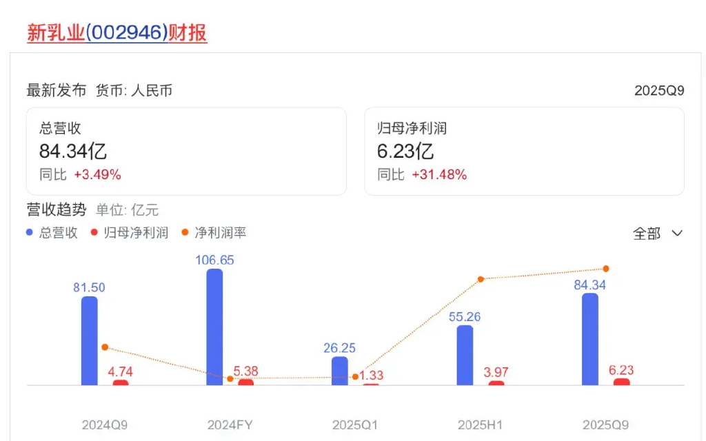 唯一!新乳业营收、净利润及扣非净利润全面增长