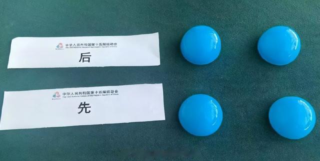 据悉,抽签分两轮,第一轮抽先后顺序蓝色球,浙江队先抽,抽出的蓝色球里写着“后”的纸条。随后第二轮抽排名红色球,新疆队抽出的红球里写着“第二名”。