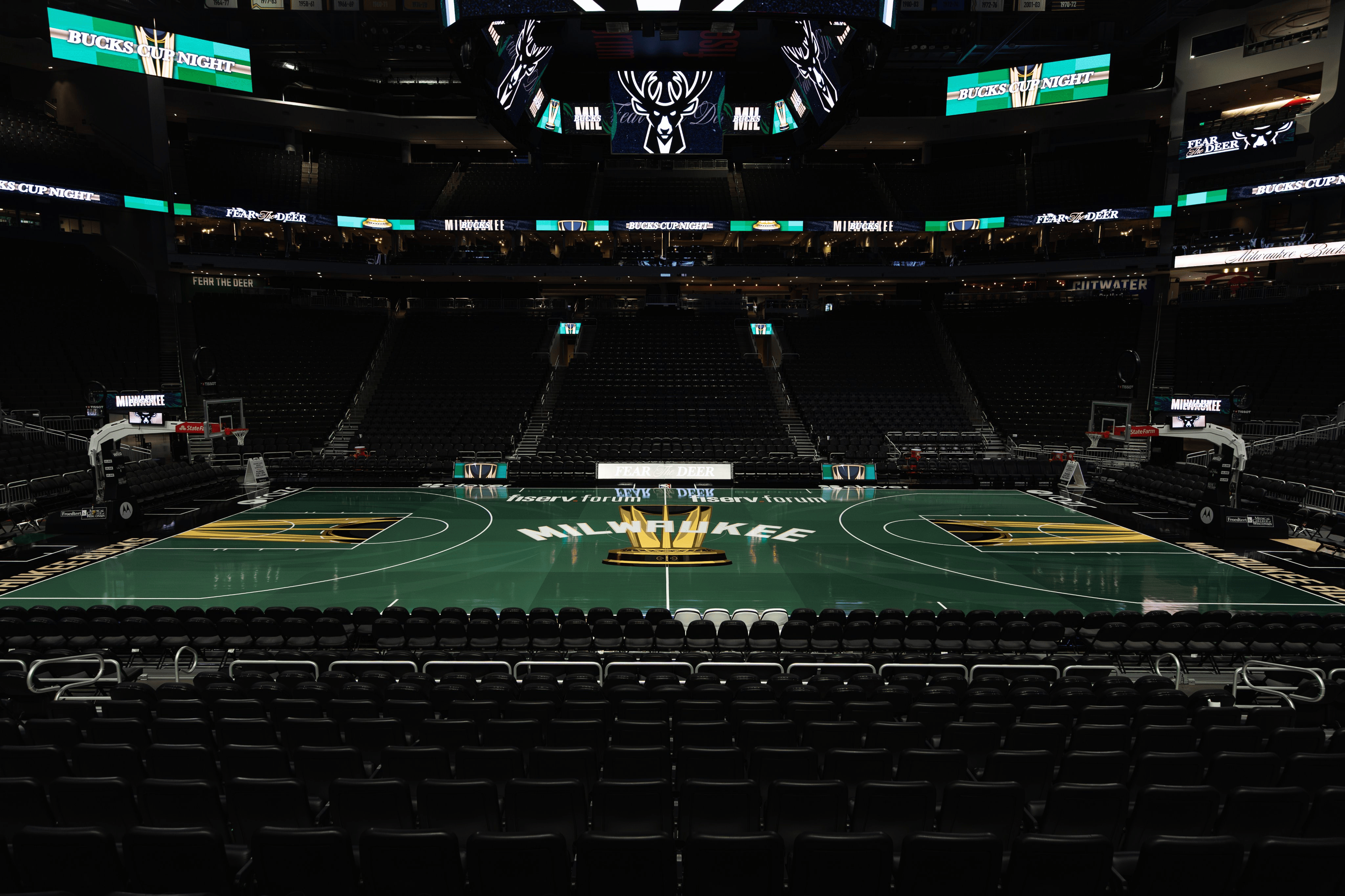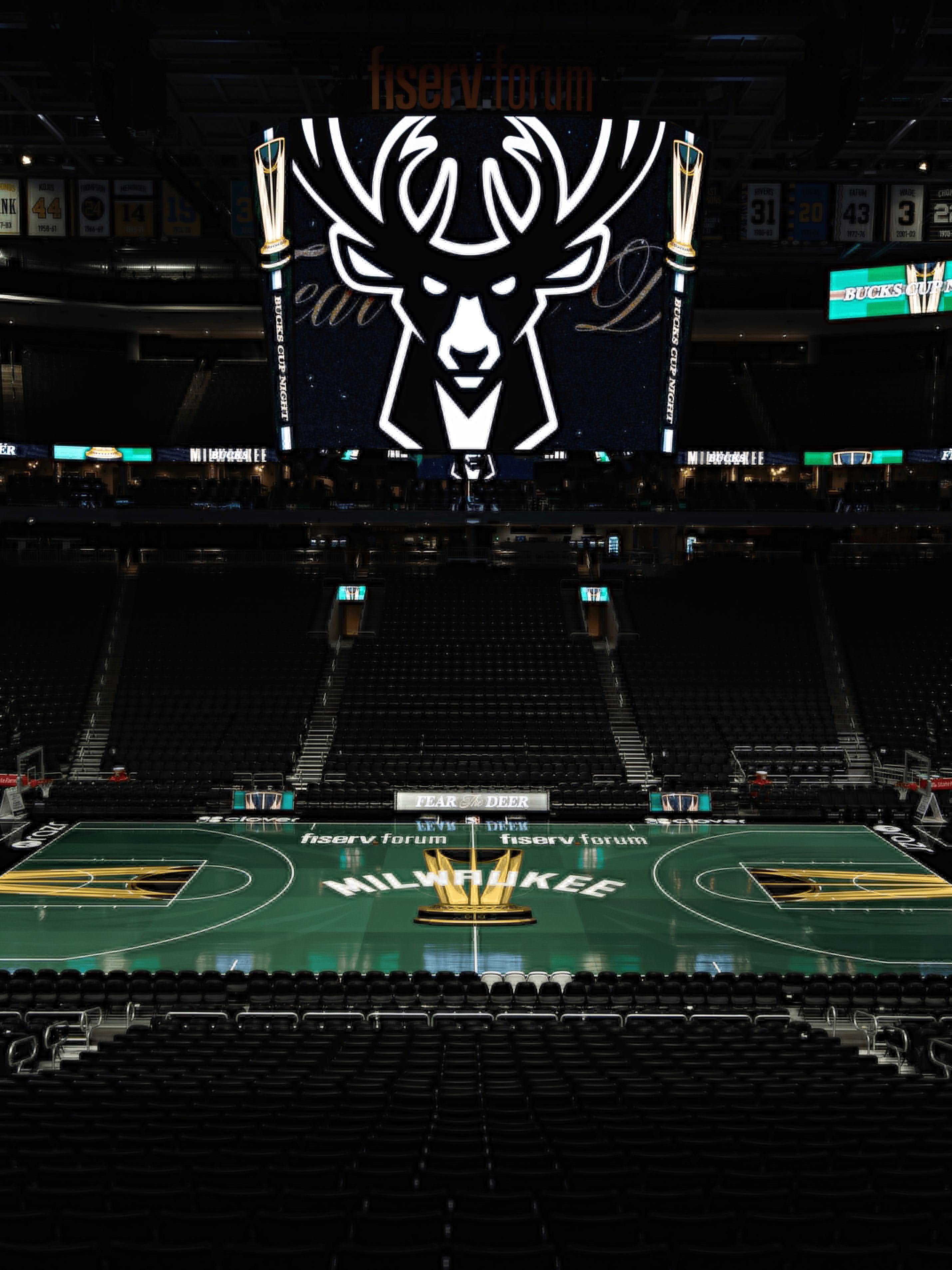 “我们全新的NBA杯比赛的地板,绿色的装潢真的是太漂亮了!“雄鹿官方附文道。