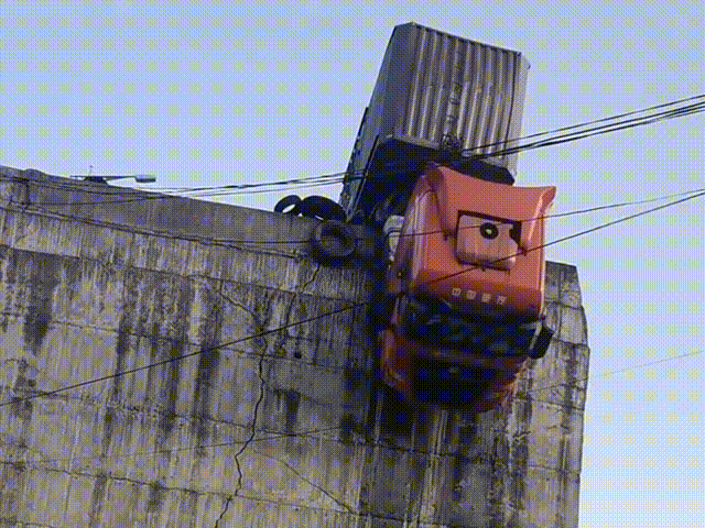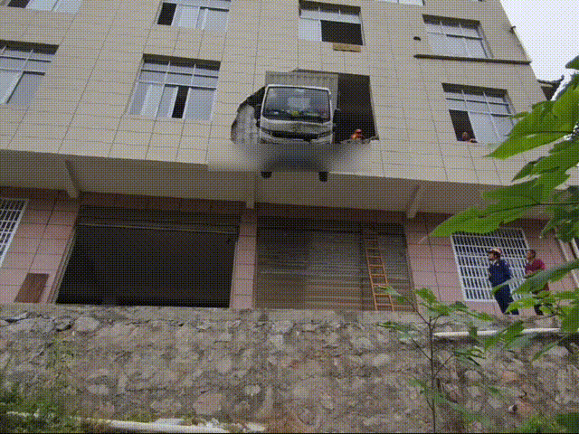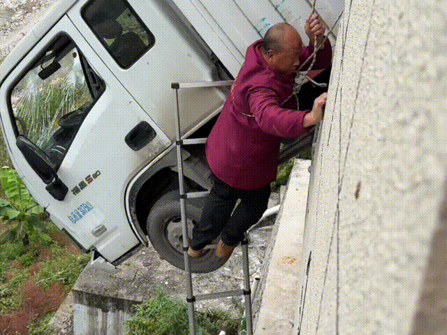 车辆就像是跷跷板,一动就可能掉下去。图源:湖北消防