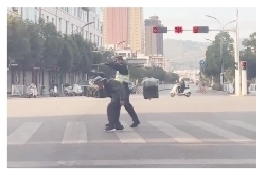 近日,云南玉溪,一位挑着担子的驼背老人蹒跚着准备过马路,一名辅警看到后赶紧上前把老人的担子接过来稳稳挑起,并护送老人安全通过路口。据了解,这名辅警叫金鑫。(新闻及图片来自新华网)