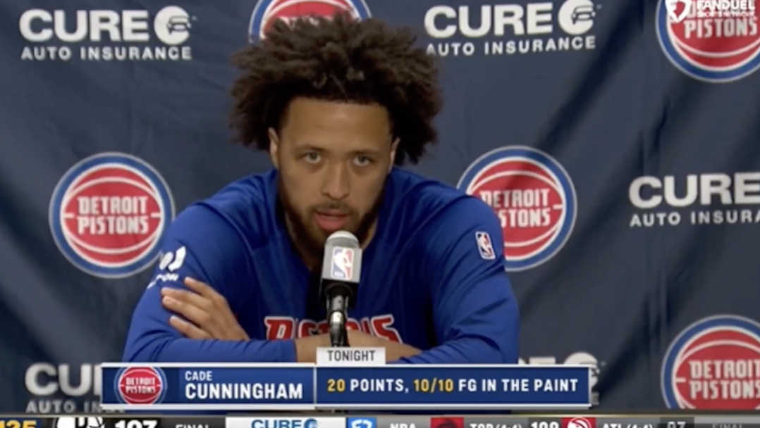 赛后,活塞球员凯德-坎宁安接受媒体采访,谈到了队友杰伦-杜伦的表现。
