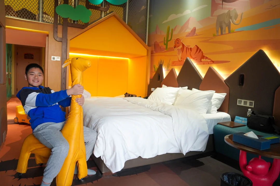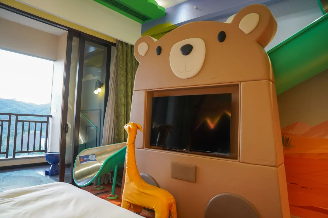 🛁 最大亮点:我们入住的是亲子房,客房自带独立温泉泡池,在房间就能泡温泉,共有三张床,房子带有滑滑梯,适合亲子家庭!
