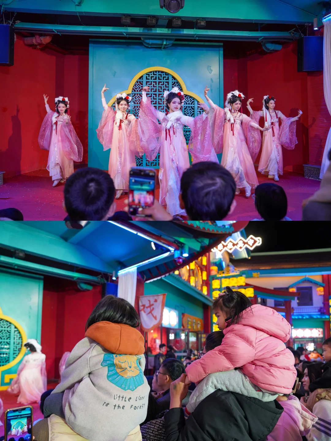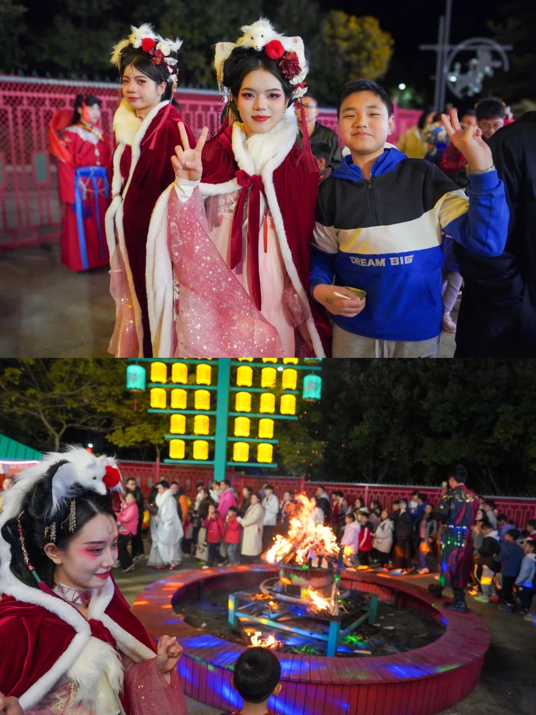 每天晚上唐风演出一场接一场,上百种美食任吃任喝!还有篝火晚会,简直是春季避寒、亲子度假的宝藏胜地!🏞