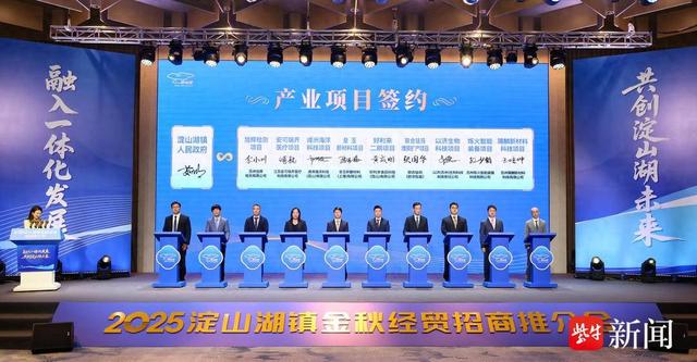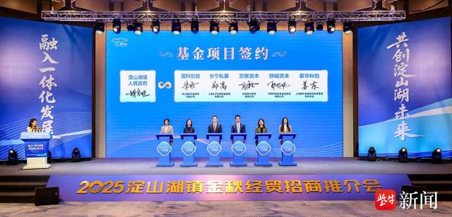 将“湖畔风光”转化为“发展动能”。11月8日下午,“融入一体化发展•共创淀山湖未来”2025淀山湖镇金秋经贸招商推介会举行。淀山湖北岸产业创新区启动,9个产业项目、5个基金项目现场签约,为淀山湖镇融入长三角一体化发展注入新动力。