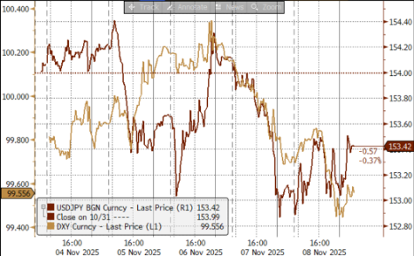 ►上周(11/3-11/7):股票市场避险情绪带来日元升值。