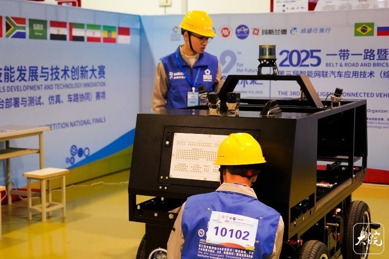 大皖新闻讯11月7日上午,2025一带一路暨金砖国家技能发展与技术创新大赛第三届智能网联汽车应用技术(综合装调、计算平台部署与测试、仿真、车路协同)赛项全国总决赛在安徽汽车职业技术学院拉开帷幕。来自全国中职、高校、企业的290个代表队580名选手在三天内,于四大技术模块中展开智慧与匠心的对决。