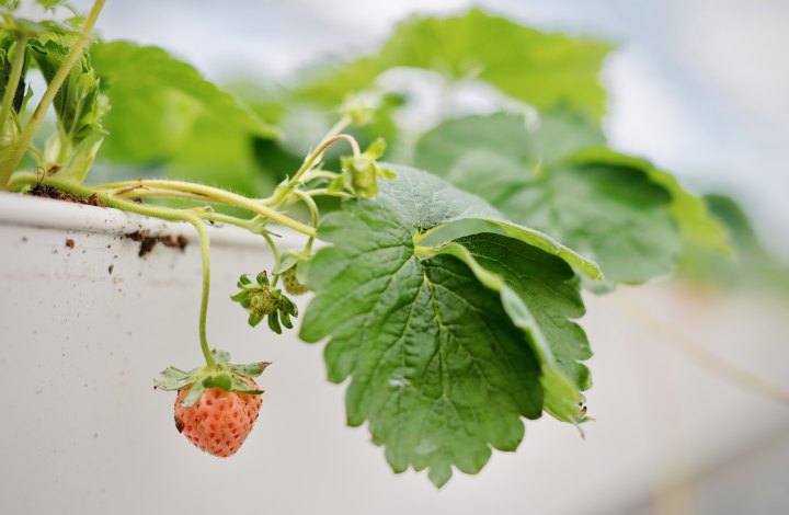 和种在地里的草莓比起来,“空中草莓园”里的草莓苗长得更好,“至少领先了半个月”。最近,草莓苗不仅开出了花,有些甚至已经结出了果。在这里,采摘草莓不再是“弯腰劳作”,而是“抬头摘取”。