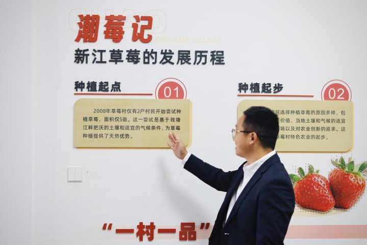 那一年,新江村提出“一村一品”建设计划,村里种草莓的人逐渐多了起来,草莓种植户达21户,面积扩展至191亩。“钱塘草莓第一村”逐渐有了雏形。