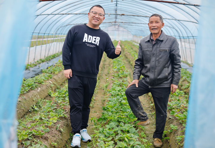 每到“草莓季”,吴长钊的儿子吴凯烊都会从杭州市区回到村里给父亲“打下手”,从草莓种植到销售,父子俩逐步摸索出了一条“行得通”的门道。不过,对于怎么打理草莓园,这个96年的年轻人有着和父亲不一样的想法。