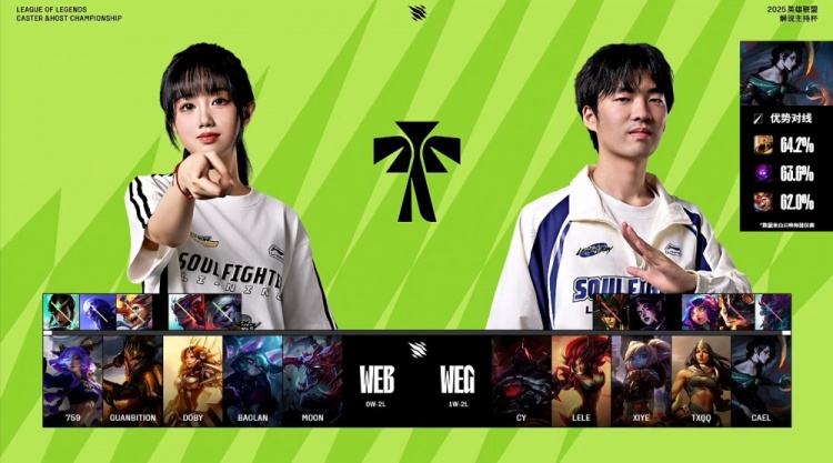 中期河道团战,泽园火锅配合Doby薇古斯进场秒掉Lele婕拉,但WEG拉扯后反打2换3,经济领先2k。中路团战,xiye慧输出拉满,WEG轻松1换5,比赛暂停。